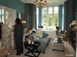 The main school building (now St Elphin's House) consists of 8 luxury apartments, Drawing Room and Library for Residents, Bistro Bar, The Orangery Restaurant, and Audley Club (swimming pool, gym, studio, changing rooms, hairdressing salon and treatment rooms etc). The chapel (now Chapel Mews) has been converted into a 2-bedroom cottage and a 2-bedroom bungalow. Orchards which was formerly a 1920's stone-built dormitory on two floors (split into very small cubicles) is now Thornton Mews and consists of 4 luxury mews cottages. Right: The Drawing Room (formerly Upper VI form room).