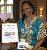 Next it was time to draw the raffle, with the major prize being left until last. As this was the 2-nights bed, breakfast & evening for two people donated by Audley Court Ltd, virtually everyone in the room were certain they were going to win it! The lucky winner was, in fact Kemi Ogunyemi (nee Gbaja, 1977 - 1979) – to say she was ecstatic when her number was called out was an understatement. Kemi hopes to use her prize next year when her daughter finishes university. Right: Kemi - Photo Mike Donlan.