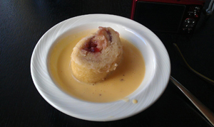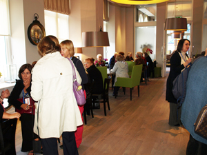 After walkabout it was time for lunch which consisted of a variety of hot and cold dishes as well as jam roly poly and custard (matron's leg) and shortbread and chocolate custard for desserts. Photo left: Sharon Neysmith. In view of the good weather, a number of people were able to sit out on the terrace to have their lunch.