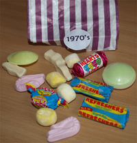 • As there used to be a tuck shop at school everyone was given a small bag containing sweets from the decade they were at school, e.g. girls there in the 1940s had 1940s sweets, girls there in the 1970s had 1970s sweets etc (as per photo left) These were also given out on arrival.