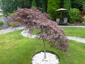 I mentioned above that I would be using the garden centre vouchers (£80's worth!) towards purchasing a specimen Acer for my garden. I purchased the tree in April 2013 but wanted to wait until it was in full leaf before putting photos on here. The tree is an Acer palmatum 'Tamuke yama', which fits in with our Japanese-style garden and is approx. 6ft tall from ground level. The two photos were taken on 8th August, 2013 - please click on them to see larger versions.