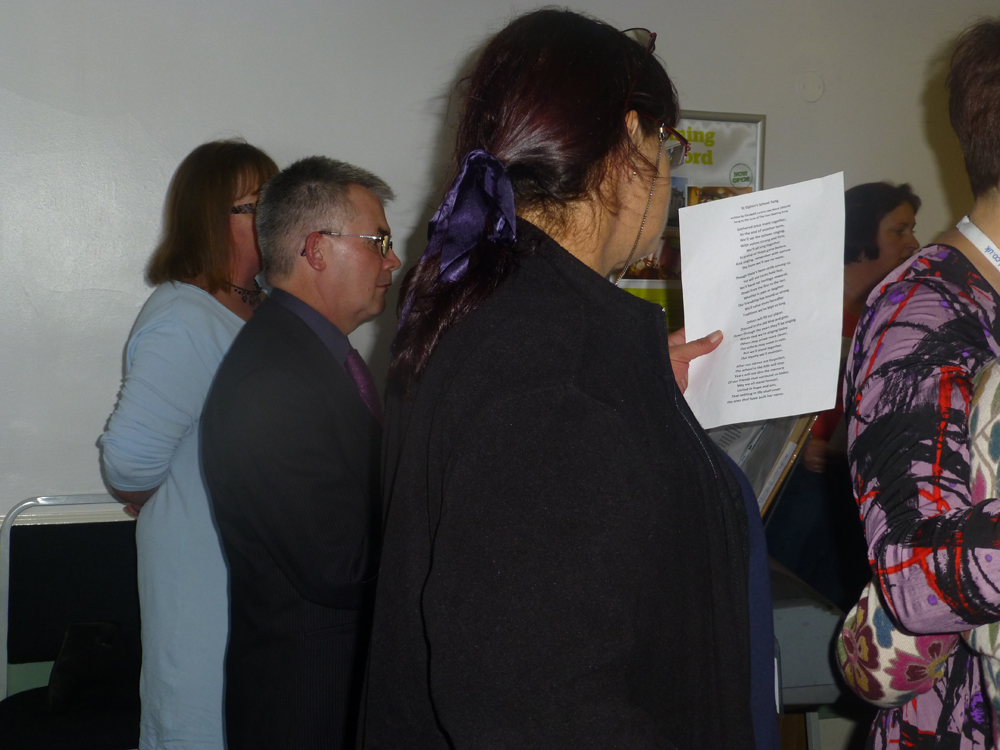 Jenny & Ali had formed a small choir consisting of themselves plus Carrie Wareham, Pam Scott-Gale, Adrienne King Amos, Lynn Dean, Kate Kirby and Mr Andrew Jackson (Director of Music, 1979-1986) as Choir Master – who had brought along a portable keyboard. As at the 2012 reunion, there were a few tears around the room whilst it was being sung.