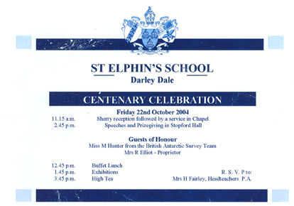 A Centenary Celebration was held to mark 100 years of St Elphin's School being in Darley Dale. There was a Champagne Reception, Centenary Service of Celebration, Buffet Luncheon, Exhibitions, Speeches and Awards and culminating in the Cutting of the Celebratory Cake.