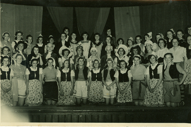 "This year the School renewed the old tradition by producing yet another Gilbert and Sullivan opera, "The Gondoliers." Mrs. Williams was the producer and Mr. Brown the musical director. Miss Lane was responsible for the stage management and properties; and Miss Jones, Miss Pratt and Margaret Edwards for the costumes, only one of which, for a cast of over fifty, was hired.