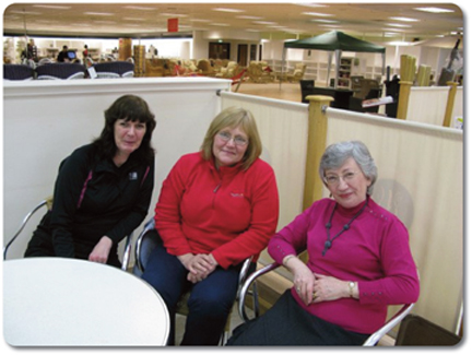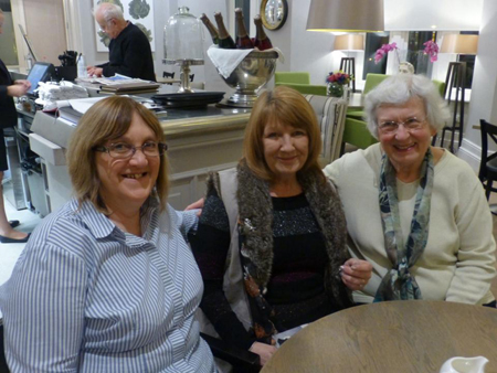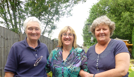 Left: Gill Haywood (Prescott), Carrie Wareham and Lizzy Dickie (Atwell) meet up in September 2009 in Huddersfield, Yorkshire.