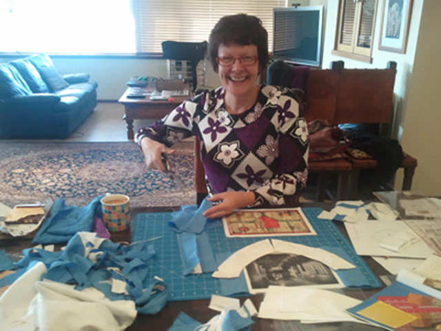 Above: Jenny Winkless (nee Gray) hard at work on the Quilt!