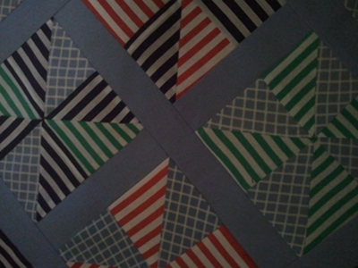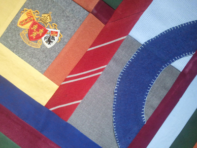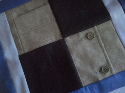 Now for the last block which is being created with sports clothing; tennis whites, blue aertex and even a pair of grey bags will find their way into this quilt!