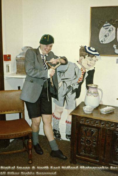 Below: Miss Carmichael (P. E. Teacher) dressed as Just William!