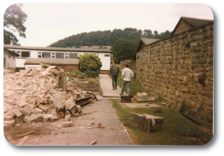 1990: The rooves of the wooden classrooms can just be seen over the top of the wall on the right. These outlasted Willowdene! Photo: Angela Mellor